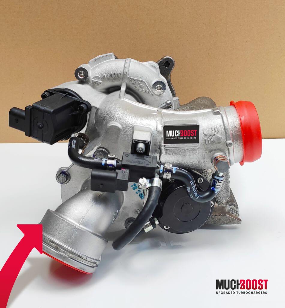 Upgrade Turbolader mit einem modifiziertem Verdichterrad sowie Abgasrad. Der Upgradeturbolader basiert auf einem original Turbolader, was bedeutet, dass der Einbau zu 1% Plug & Play ist.